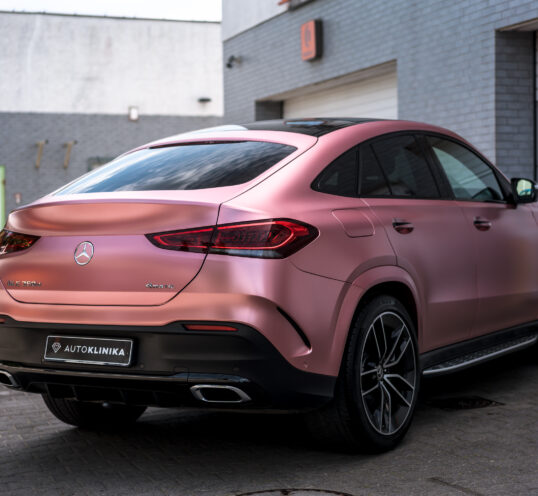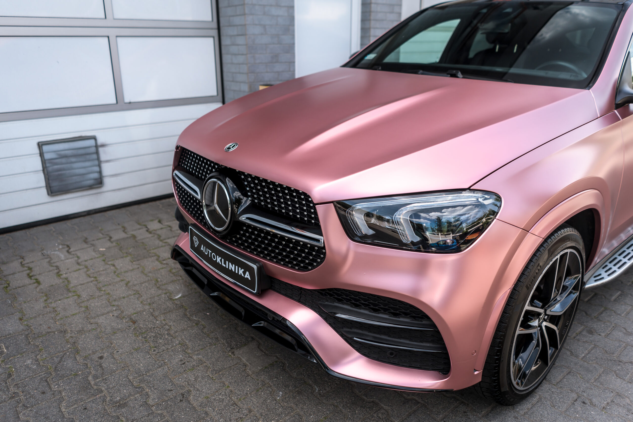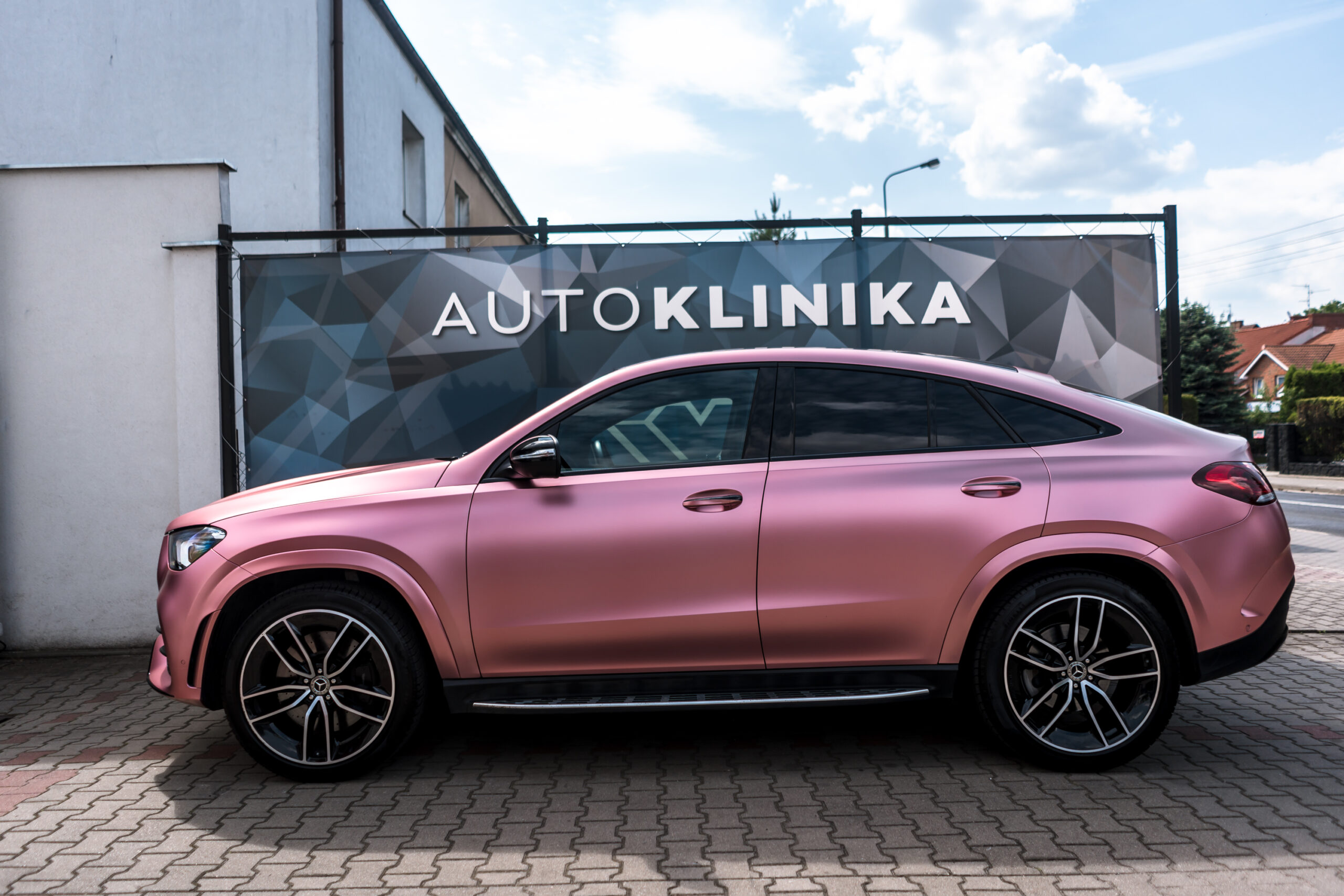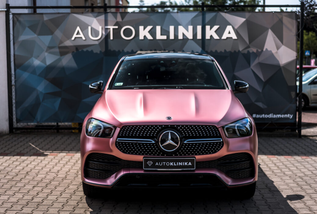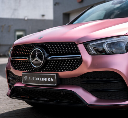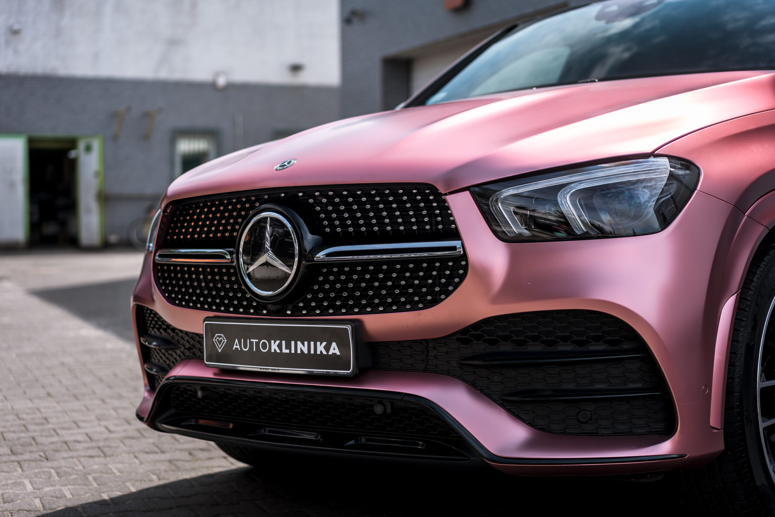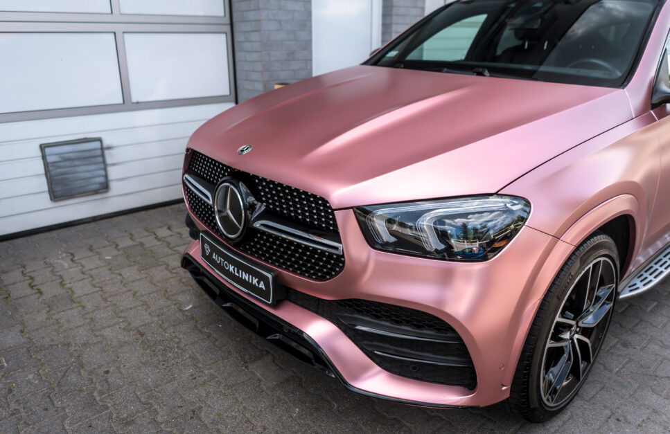 Jesteśmy zachwyceni efektem, który uzyskaliśmy oklejając tego Mercedesa tą różową folią. Stał się wyjątkowym egzemplarzem. Dodatkowo na folię nałożyliśmy powłokę ceramiczną, aby folią była bezpieczna i bardziej odporna na zarysowania.
